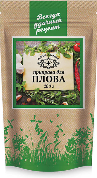 Enhance your cooking game with Magia Vostoka Seasoning for Plov. This expertly crafted blend of herbs and spices is specifically designed for pilaf and rice dishes, adding rich flavor and aroma to every bite. Take your dishes to the next level with this 200g pack.
