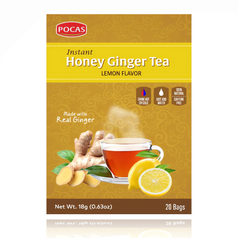 Pocas Honey Ginger Tea with Lemon offers a balanced blend of spicy ginger, natural honey sweetness, and refreshing lemon zest. Each tea bag delivers a comforting and invigorating experience, supporting digestion and soothing the throat. Ideal for those seeking a flavorful, health-conscious beverage, this 20-bag pack ensures convenience and consistent quality in every cup.