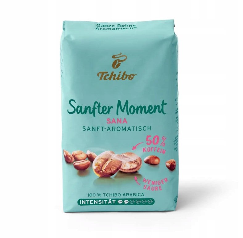 Tchibo Sana Sanfter Moment is a carefully crafted 500 g ground coffee blend featuring 100% Arabica beans. Designed for those who appreciate a mild flavor and low acidity, this coffee delivers a balanced aroma and smooth texture. With 50% reduced caffeine, it offers a gentle energy boost without overwhelming the body, making it suitable for any time of day. Enjoy a refined coffee experience that combines subtle taste with a lighter caffeine impact.