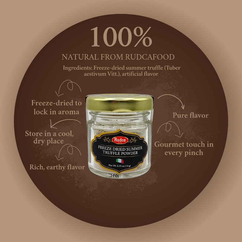Transform your dishes into a five-star experience with just a pinch of Freeze Dried Summer Truffle Powder. Made by Rudca Food, this 10g powder adds an intense, earthy flavor to any dish. Elevate your cooking with this premium ingredient.