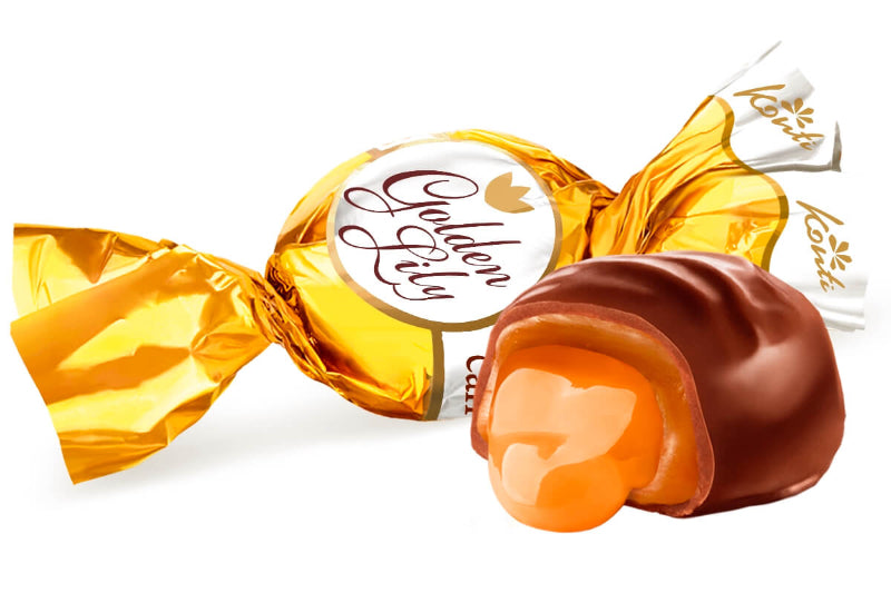 Konti Golden Lily Chocolate Candies offer a refined treat featuring dome-shaped sweets coated in a smooth, flavorful glaze. Each candy combines a rich toffee exterior with a luscious chocolate-flavored filling, delivering a balanced blend of textures and tastes. Perfect for connoisseurs seeking a sophisticated confection, these 2.2 lb candies provide an indulgent experience with every bite.