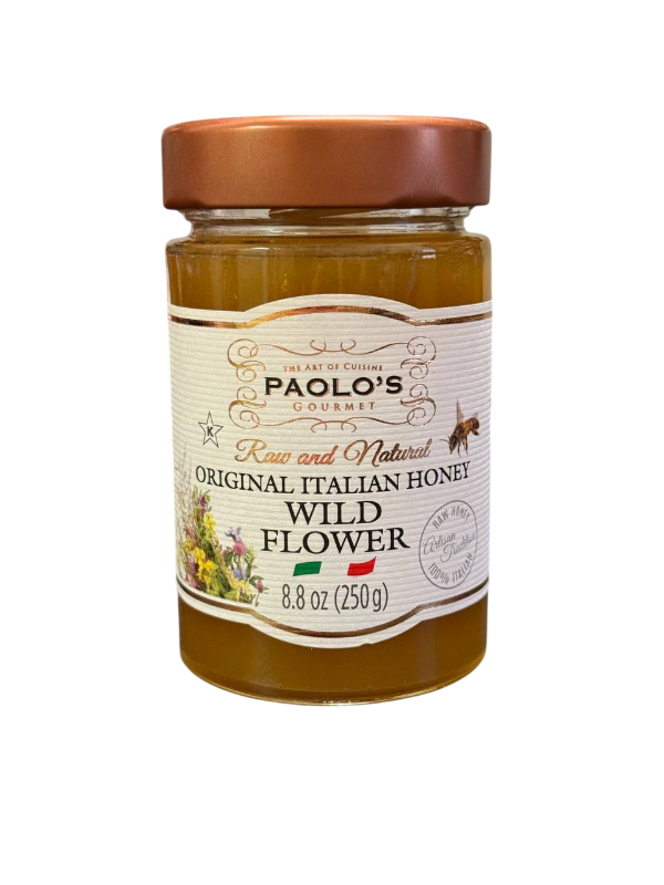 Experience the delicious and unique taste of Paolo's Wild Flower Italian Honey. This 8.8 oz jar is made from wild flowers, providing a rich and flavorful sweetness. Perfect for adding to tea, drizzling over desserts, or using in cooking. Taste the difference of authentic Italian honey.