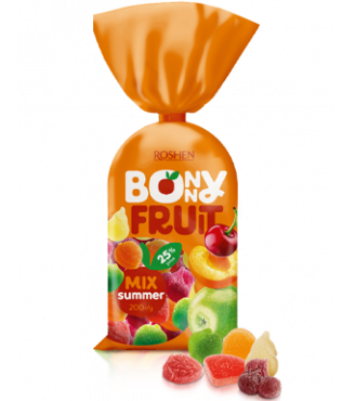 These delicious Bonny-fruit summer mix jelly candies from Roshen are the perfect treat for any sweet tooth. Made with real fruit juice, they offer a burst of fruity flavor in every bite. With a colorful assortment and a convenient 7.05 oz size, they're great for snacking or sharing. Try them today and satisfy your cravings!