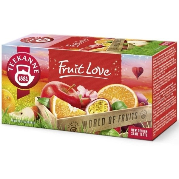 Teekanne Fruit Tea Fruit Love combines the natural flavors of apple, hibiscus, and rosehip with the vibrant sweetness of passion fruit and orange. This expertly crafted blend offers a refreshing and aromatic experience, perfect for those seeking a balanced fruit tea that delights the palate with every cup. Each box contains 20 tea bags, making it convenient to enjoy this harmonious infusion anytime.