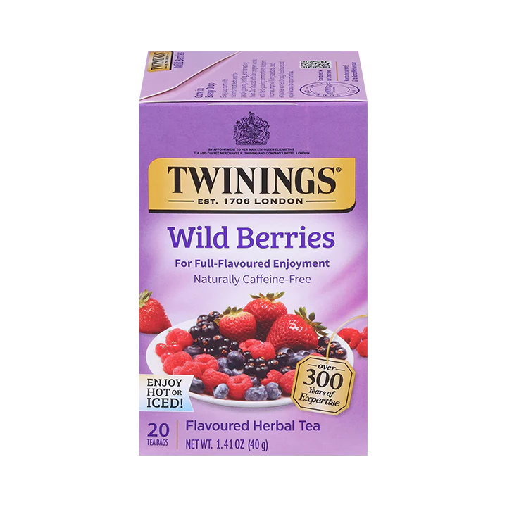 Indulge in the juicy flavors of Twinings Wild Berries Herbal Tea. With real strawberry, raspberry, blueberry, and blackcurrant, this caffeine-free blend is a vibrant treat anytime. Individual tea bags make for easy brewing, perfect for a relaxing single-serving cup. Satisfy your cravings with this delectable herbal blend.