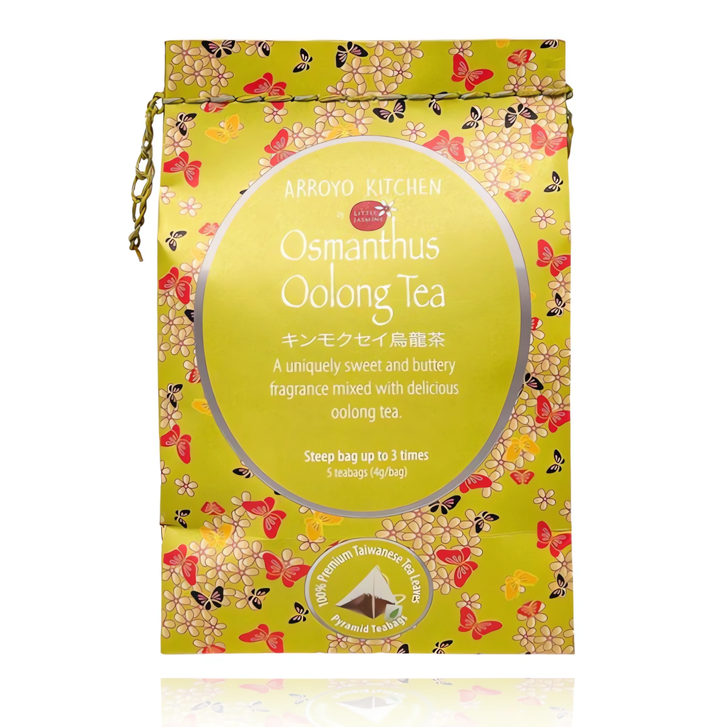Indulge in the unique malty and smokey flavor of Arroyo Kitchen's Osmanthus Oolong Tea. Sourced from premium Taiwanese tea leaves, this semi-oxidized tea also features a buttery fragrance of Osmanthus flowers. With each tea pyramid steeping up to 3 times, you can enjoy this delicious and distinctive blend again and again.