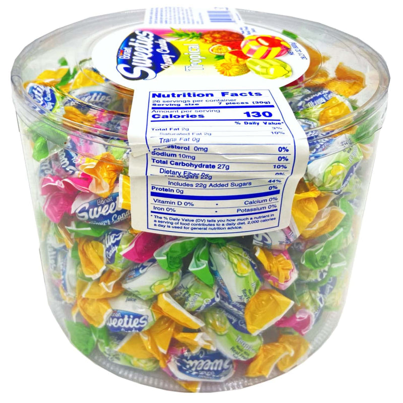 Bonart Sweeties Damla Tropical Fruit Chewy Candy delivers an 800-gram pack of vibrant, tropical-flavored treats. Crafted for a balanced chewy texture, these candies offer a satisfying fruity experience ideal for sharing or personal indulgence. Their convenient size and appealing taste make them suitable for diverse occasions, from casual snacking to party assortments.