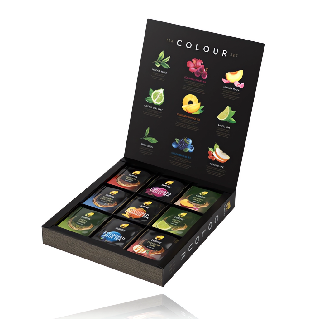 Introducing Curtis Colour Tea Set - a perfect gift for any occasion. This set includes a mix of multifaceted tea flavors, including black, green, orange, purple, and blue. Made with natural ingredients like anchan, hibiscus, and turmeric, these teas are bursting with fruity flavors. Satisfy your taste buds with this diverse and delicious tea set.