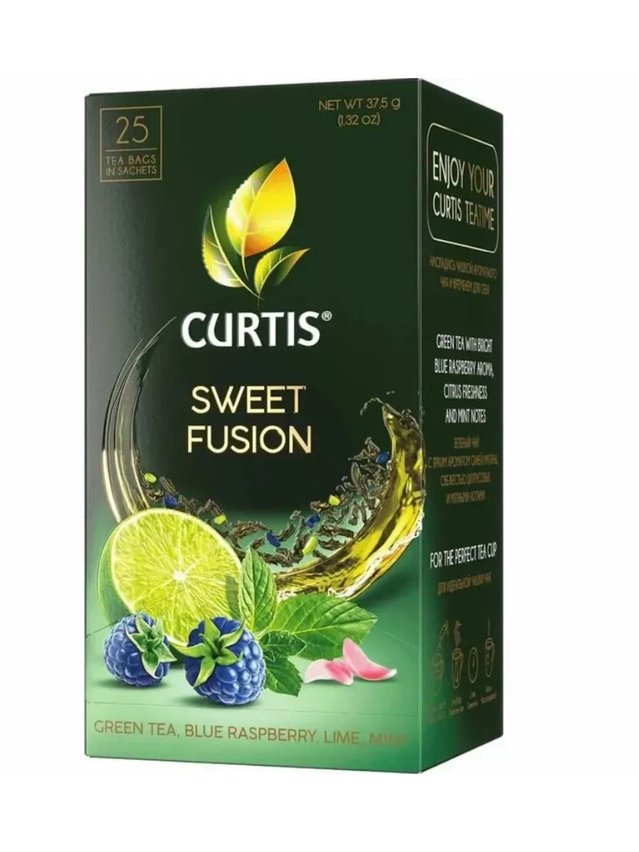 Curtis Sweet Fusion Green Tea combines the delicate, soothing qualities of green tea with a unique blend of blue raspberry, Thai lime, and mint. This carefully crafted infusion offers a harmonious balance between sweet and fresh flavors, delivering a refreshing and invigorating experience in every cup. Ideal for those seeking a distinctive twist on traditional green tea. Each box contains 25 tea bags for convenient brewing.