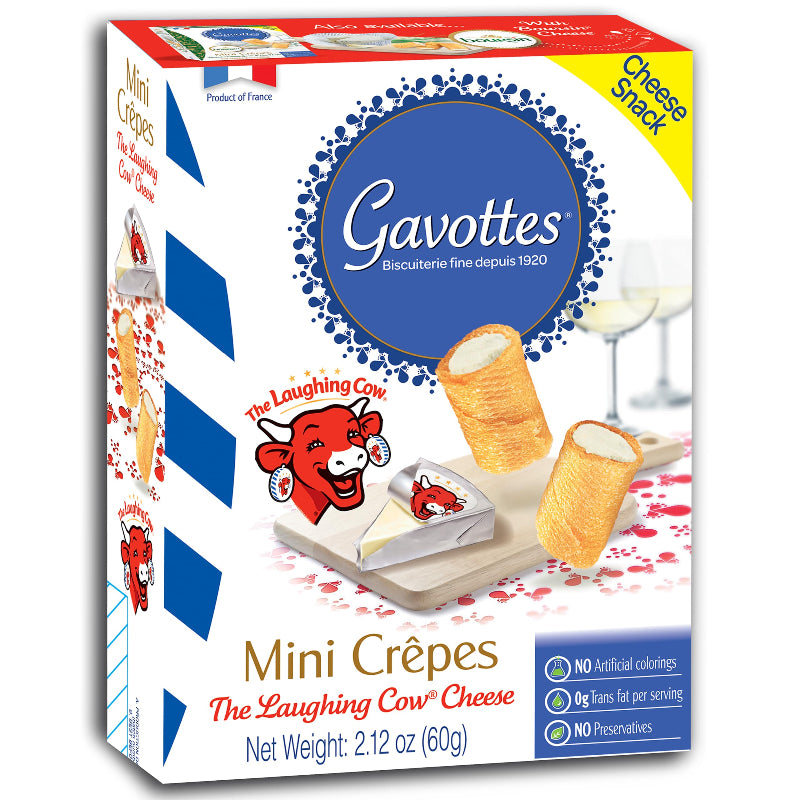 Indulge in the perfect harmony of sweet and savory flavors with Gavottes French Laughing Cow Cheese Filled Mini Crispy Crepes. These light, thin, and airy crepes are filled with creamy Laughing Cow cheese, giving you a taste of authentic French waffle-like cookies. Satisfy your cravings with every bite.