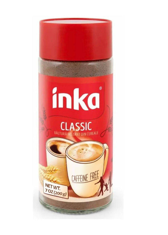 Inka Classic is a caffeine-free instant grain coffee substitute crafted from a blend of barley, rye, chicory, and sugar beet. This Polish-made beverage delivers rich, satisfying coffee flavor without the caffeine, making it perfect for any time of day. Enjoy a warm cup without worrying about sleep disruption or blood pressure concerns. Simply mix with hot water for a comforting, wholesome alternative to traditional coffee. Each 200g package provides multiple servings of this classic European favorite.