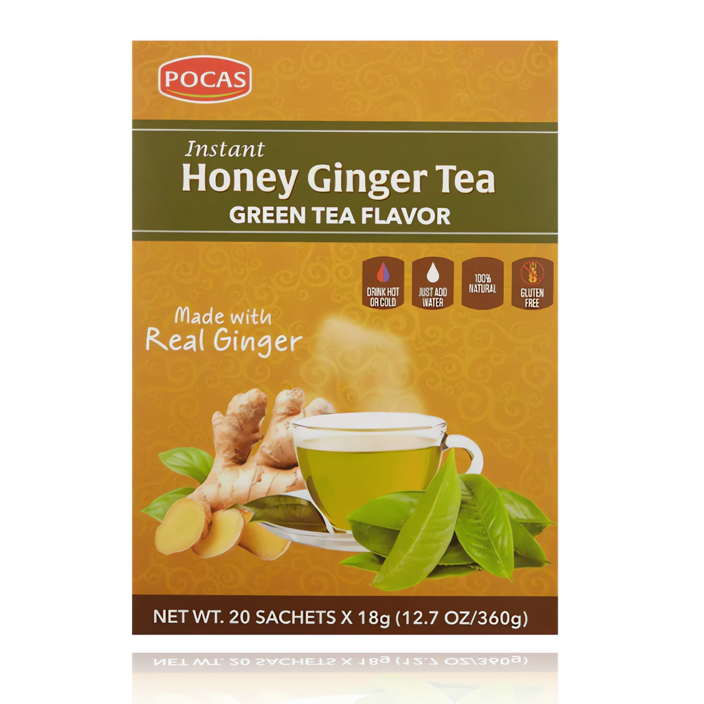 Experience a soothing, all-natural beverage with Pocas Honey Ginger Tea. Made from a simple blend of ginger, green tea extract, honey, and sugar, simply add our instant tea powder to hot or cold water for a comforting and delicious drink. Incorporate it into your daily wellness routine for added benefits.