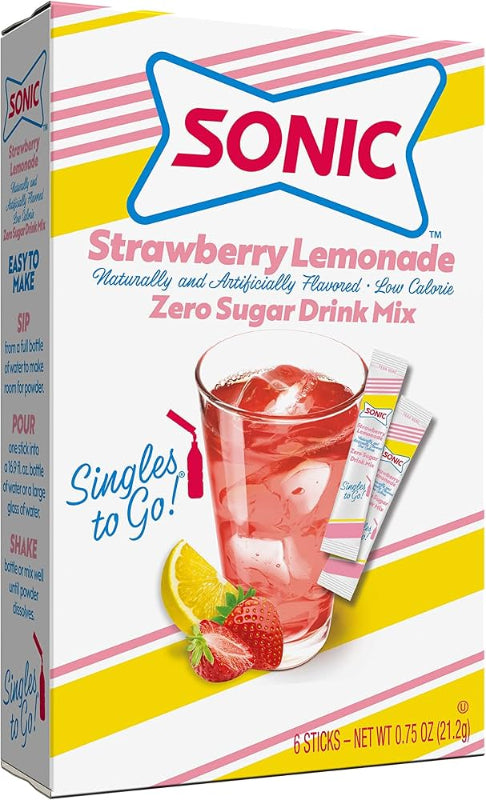 Introducing Sonic Singles Strawberry Lemonade to Go Powdered Drink Mix! Enjoy the signature Sonic flavor on the go with our sugar-free, caffeine-free, and non-carbonated packets. Perfect for the car, work, or anywhere else you go, these individual portions will transform your plain water into a burst of delicious flavor. Stay hydrated and energized with Sonic Soda Singles To Go Drink Mix.