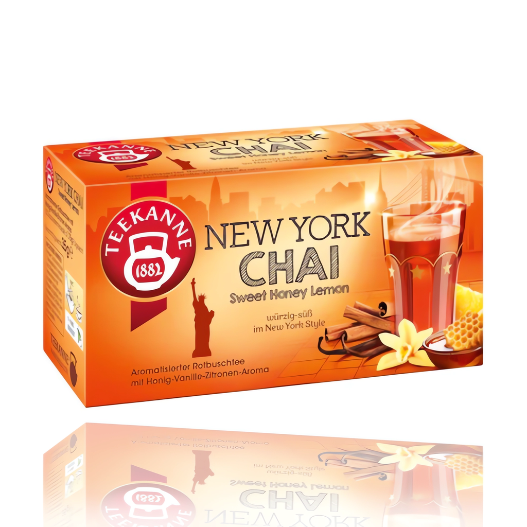 Temptingly sweet and pleasantly spicy: Just like life in New York, TEEKANNE also tastes New York Chai. A mild Rooibos base, refined by selected spices, meets the taste of sweet honey and fruity lemon and sends you on a pleasurable journey to the vibrant metropolis. Naturally sweet, low in calories and thanks to the rooibos tea without caffeine, this chai is probably the most enjoyable way to experience the lifestyle of New York.